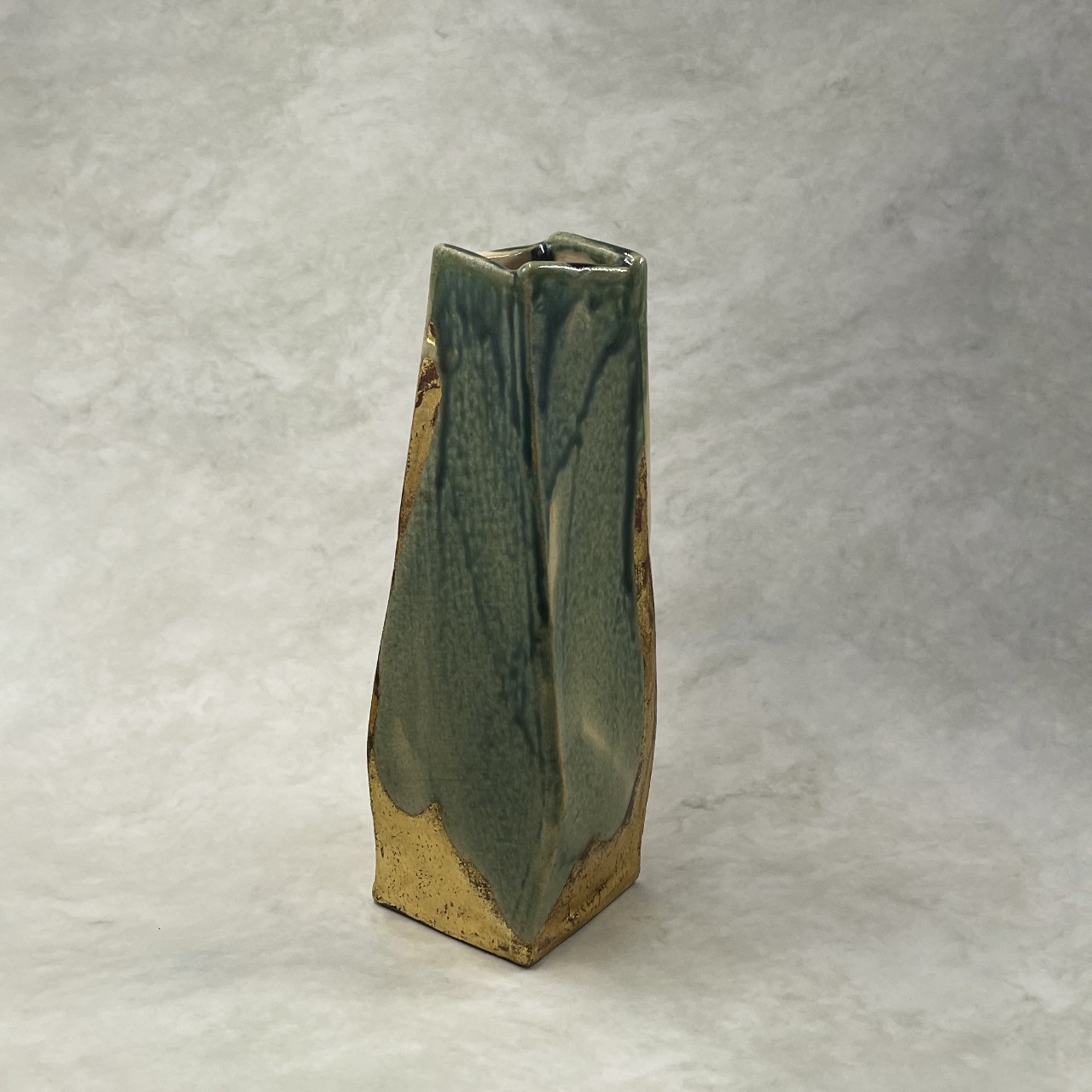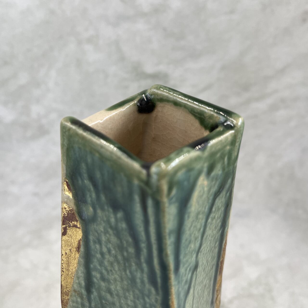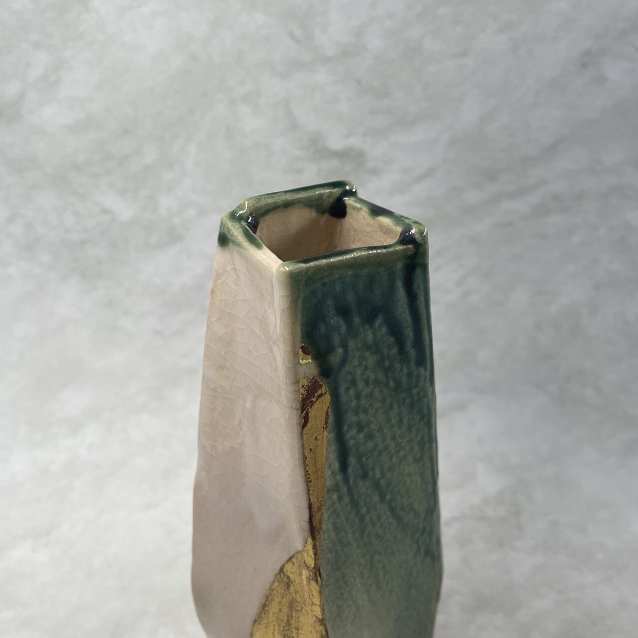 【陶漆】ねじれ花器 ツイストフラワーベース 一輪挿し 陶器花瓶 金箔