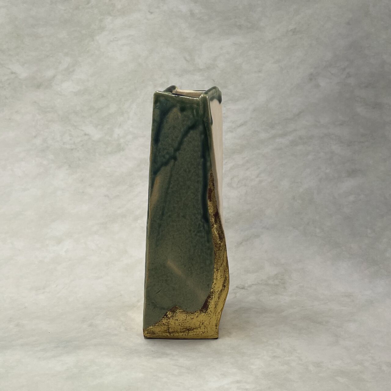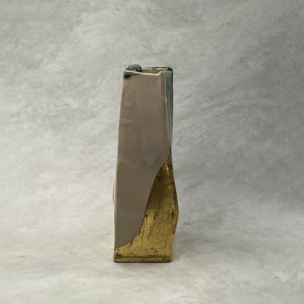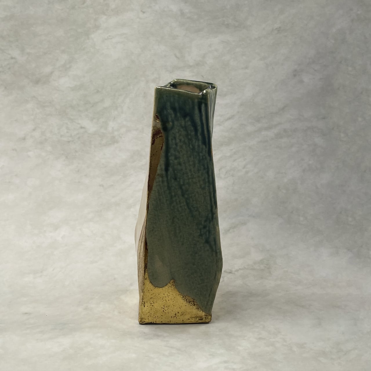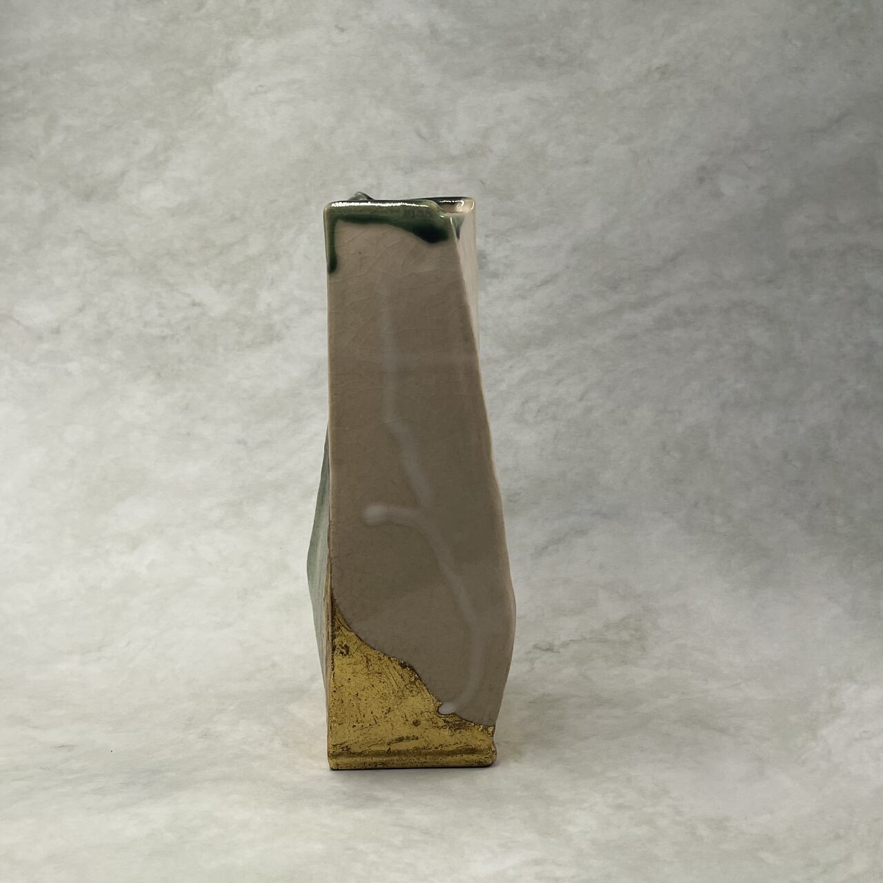 【陶漆】ねじれ花器 ツイストフラワーベース 一輪挿し 陶器花瓶 金箔