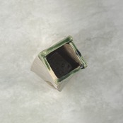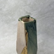 陶器に織部釉と志野釉、漆を塗り金箔を施しました。